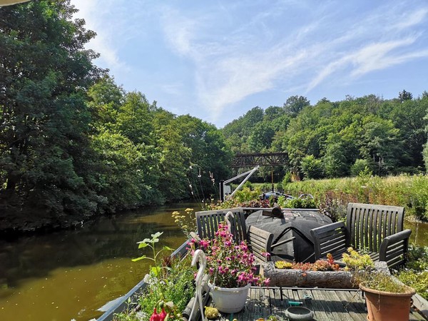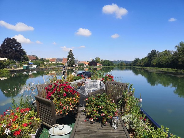 Sa grande terrasse (environ 30 m²) permet de profiter du paysage en sirotant tranquillement l’apéro ; son intérieur est cosy et confortable. Il est vendu avec un bachot (petite barque), non motorisé, idéal pour balades en amoureux ou pour aller boire un verre chez le voisin.